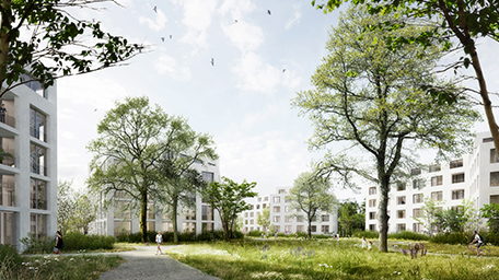 Auf dem 23.000 Quadratmeter großen Gelände einer ehemaligen Schule im Stadtteil Hartenberg/Münchfeld soll ein durchmischtes, städtebaulich hochwertiges Wohnquartier entstehen. Die spannende Aufgabe des Wettbewerbs umfasste die Realisierung von hochwertigen, aber bezahlbaren Miet- und Eigentumswohnungen.